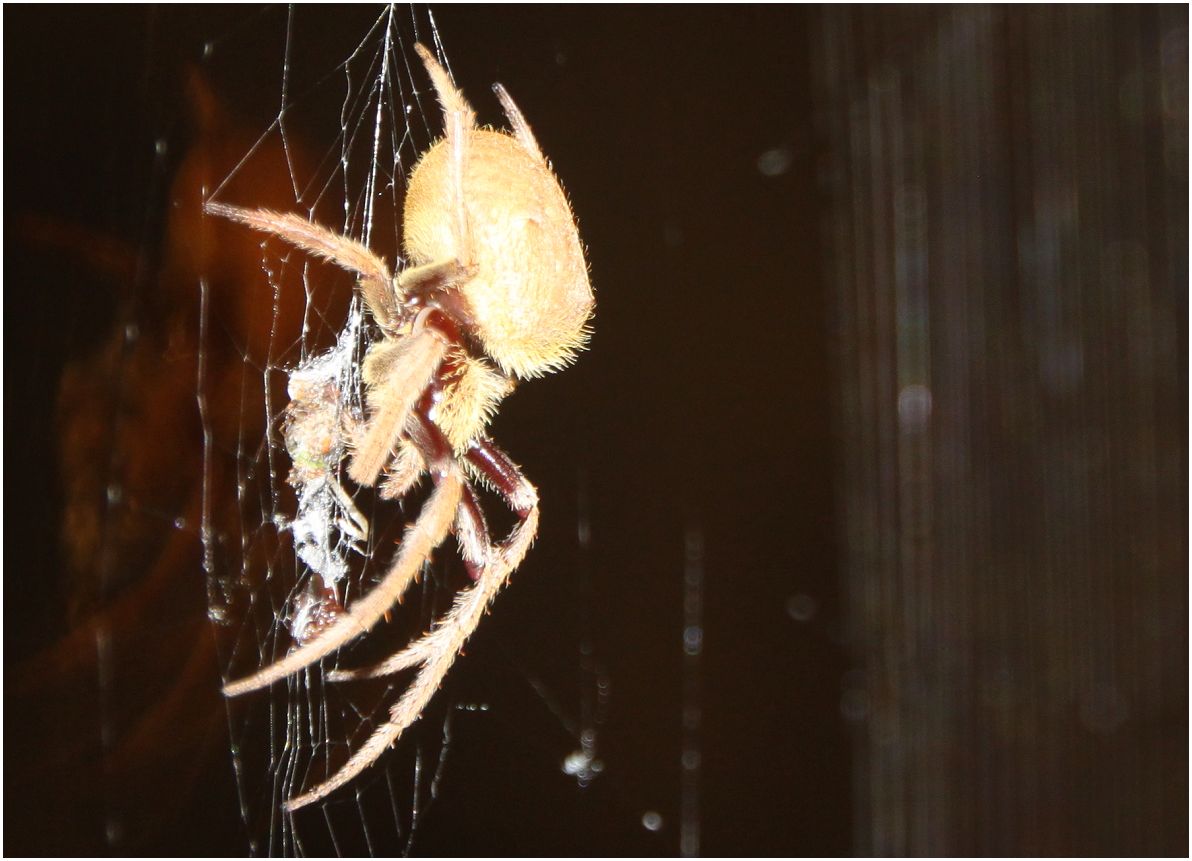 Her sister, locates her web perfectly placed to nab you, still sleep befuddled, as you turn to walk out into the garden at the bottom of the back stairs.